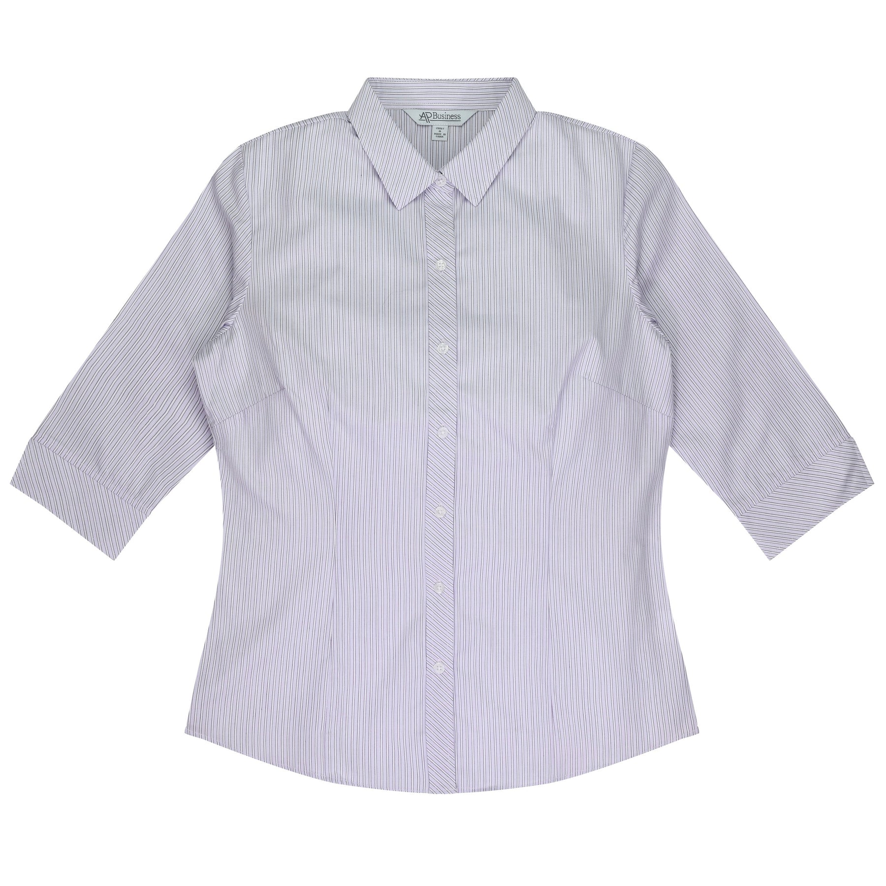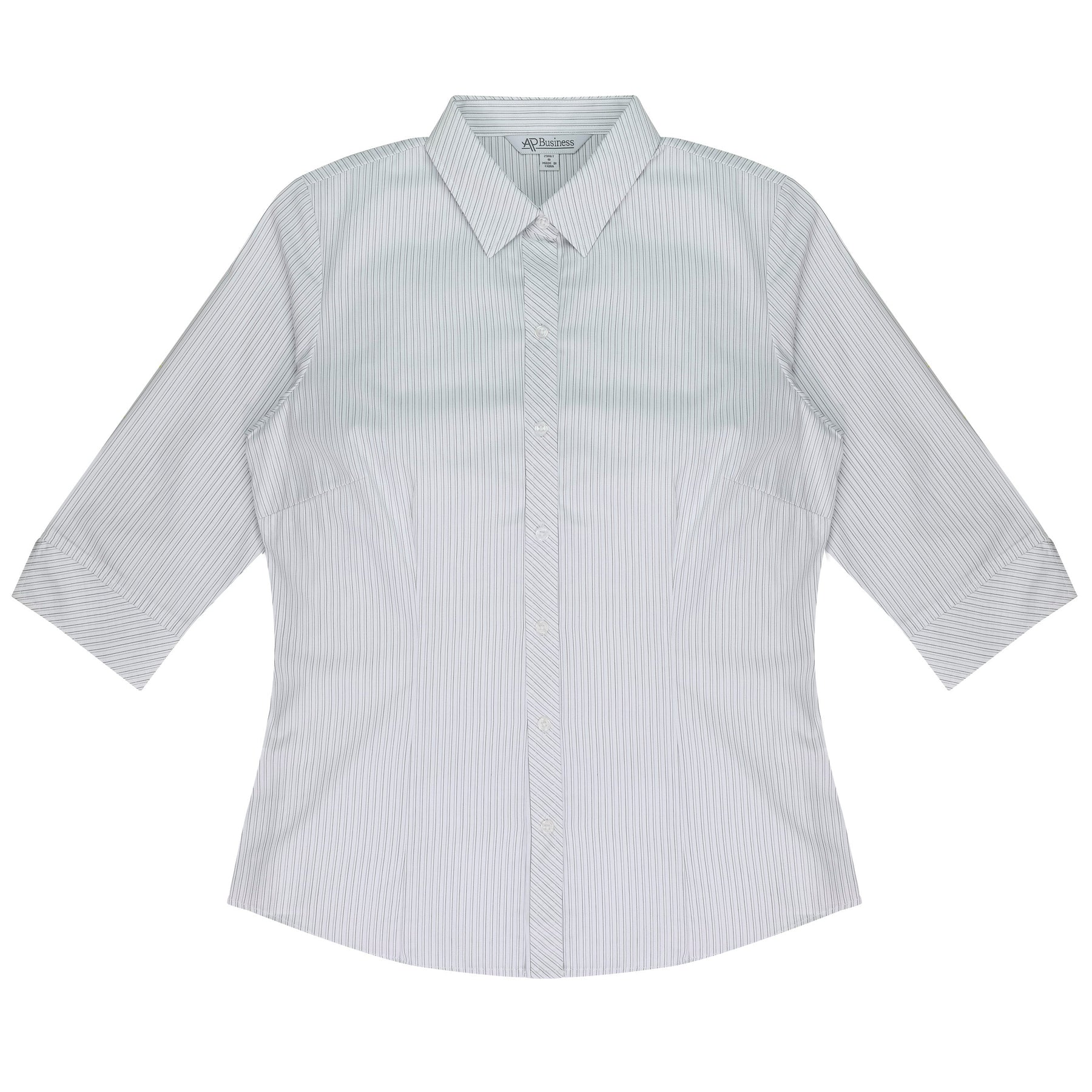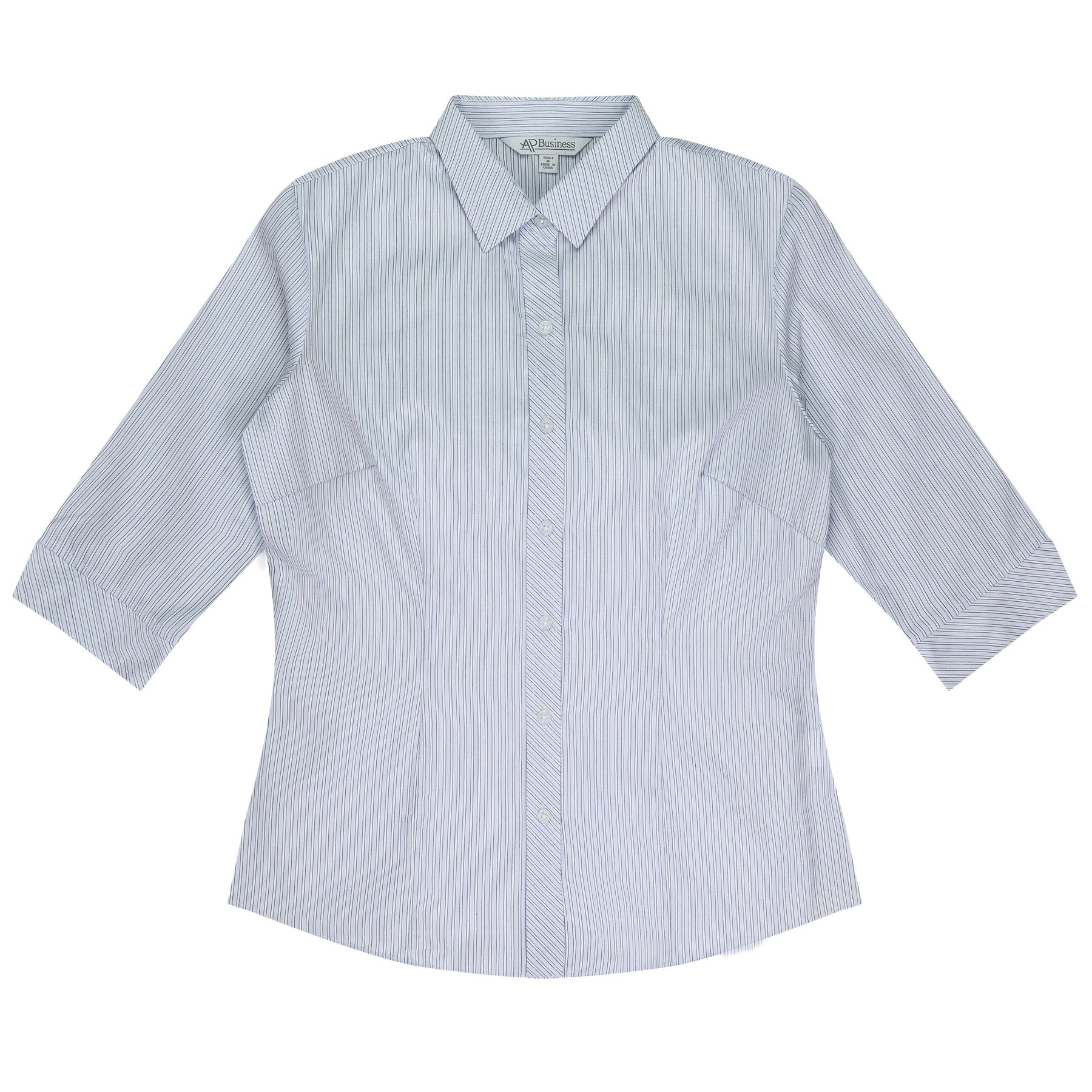 Bust darts, slimming front and back waist darts, a ‘Magic Button’ to prevent gaping and bias cut cuff sleeves