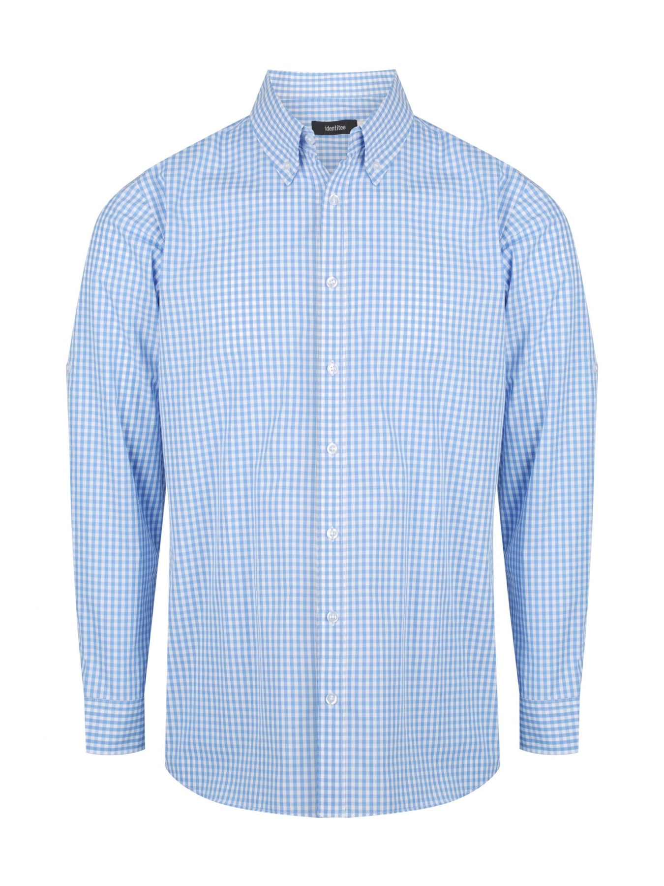 FEATURES: Button down collar, Roll up sleeve tab, Pearl buttons