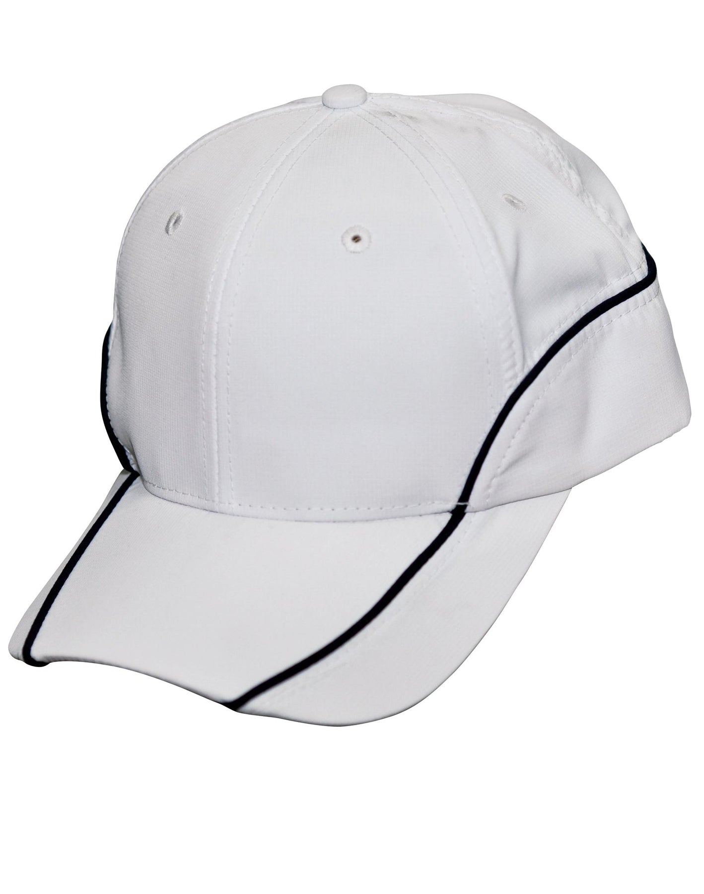 Description: 6 panel structured laid back front. Ripstop with polyester mesh lining, contrast trim across peak & crown. Short velcro crossover.