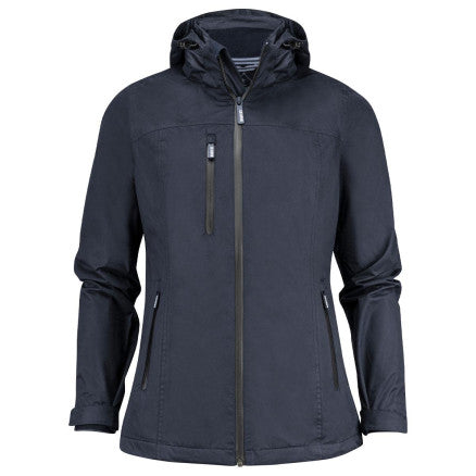 Detachable hood, adjustable drawstring at bottom hem and hood, as well as Velcro|®| adjustable cuffs.|Fleece lined chest, back, and collar.|Outside chest pocket and inside chest pocket.|Zipper opening at back and hood lining for ease of decoration. |100% polyester, WP 5000mm, MVP 5000g/m²
