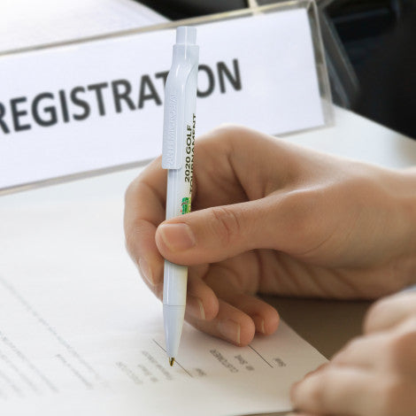 Retractable plastic ball pen which is has an anti-microbial additive in the plastic, making it an ideal pen for use in highly frequented areas. It has text supporting its anti-microbial properties moulded into the clip and features large branding areas on the barrel. It has a blue refill with 1200m of German manufactured Dokumental ink and a tungsten carbide ball for improved writing quality.