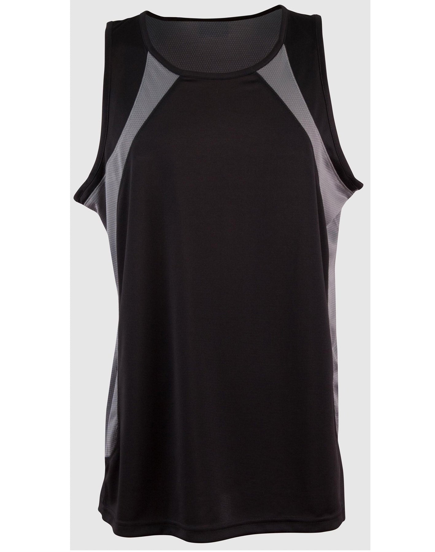 Description: Moisture management fabric. Ultra light mesh in contrast contoured side panels for ventilation. Excellent fit and comfort for athletes.